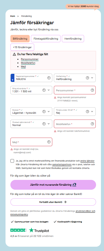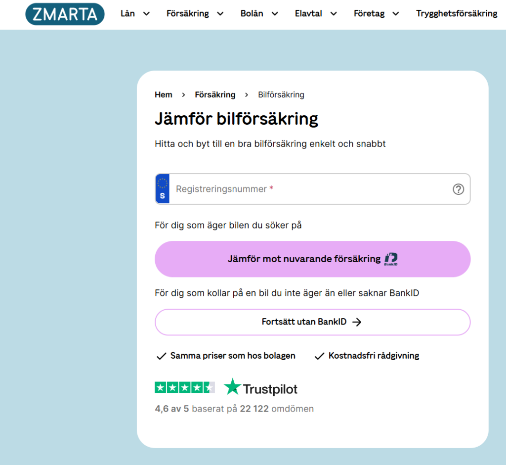 If you don’t have the car yet, “you are just checking” – find “your” carmodel at “blocket” and copy the “license plate number” and use it on Zmarta (without BankID) and then add your other wishes/information.